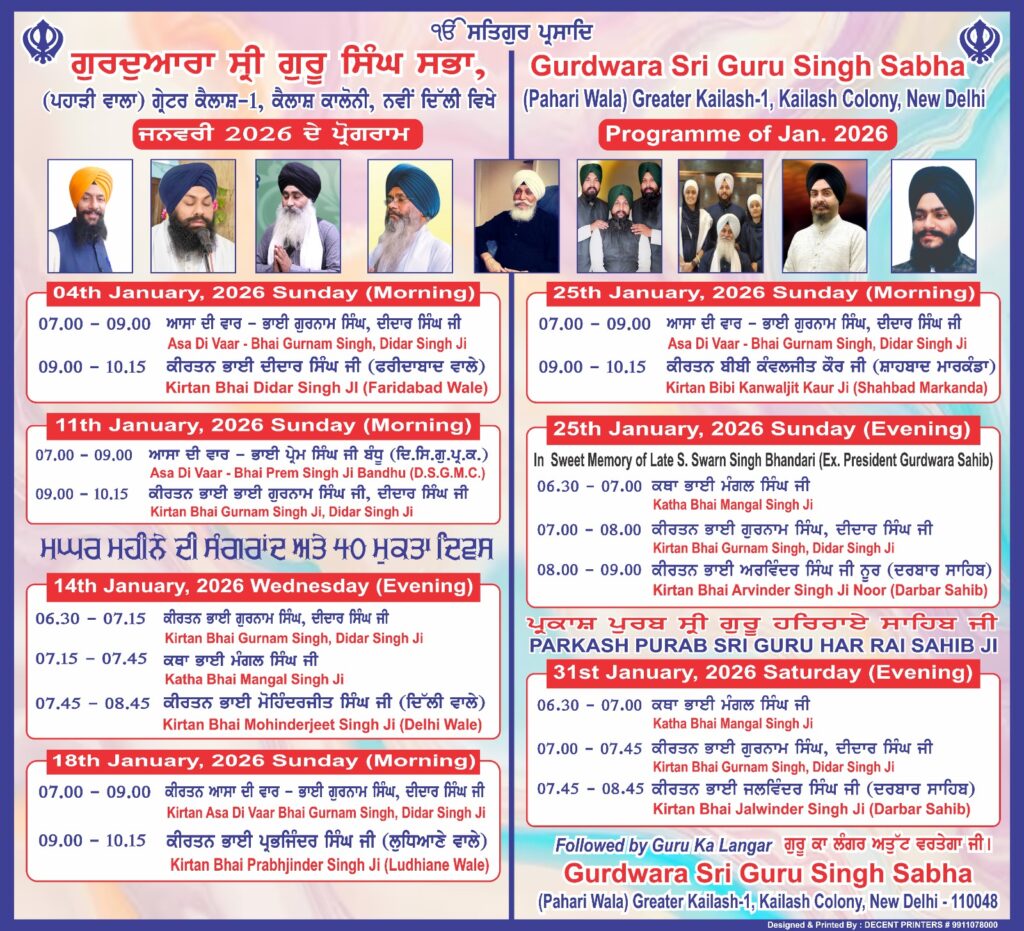 Sampuran Asa Di Var followed by Shabad Kirtan by well known Ragi Jathas till 10:30AM. Guru Ka Langar served there after.